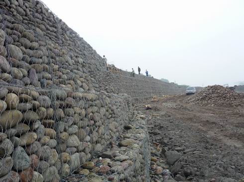 六角石笼网护坡不仅具有亲水性、透水性、抗震性、整体性等上述优点,很大的优点是可实施绿化、植被。在优化、美化环境、改善生态上优于传统的护坡工程。六角石笼网箱体填充料间的空隙,原材料中夹带泥土,且随着时间的推移,迟早会被土壤填满,从而为绿化、植被创造了条件,即使不播撒种子,也会自然长出草木植物。如在空隙中填入营养土,播种花草种子,做一些护坡工程绿化、植被,可以作为观赏景点。这是传统的刚性护坡工程是无法实现的。即使是近年来有了拌草种砼作为生态护坡试点,但难以实现多年生草木自然循环的目标。其传统的砌块石缝隙在植草,绿化则不如六角石笼网箱笼体结构内植草效果